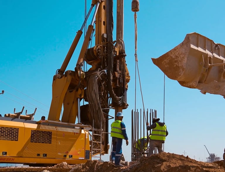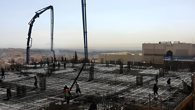 Execution of infrastructure projects including water stations, utilities networks, and reinforced concrete works for large-scale public projects.