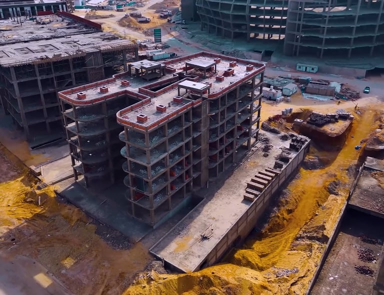 Execution of residential buildings, compounds, and housing developments, including reinforced concrete works, finishing, and full project delivery according to approved designs and standards.